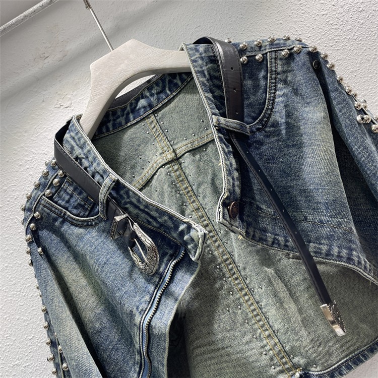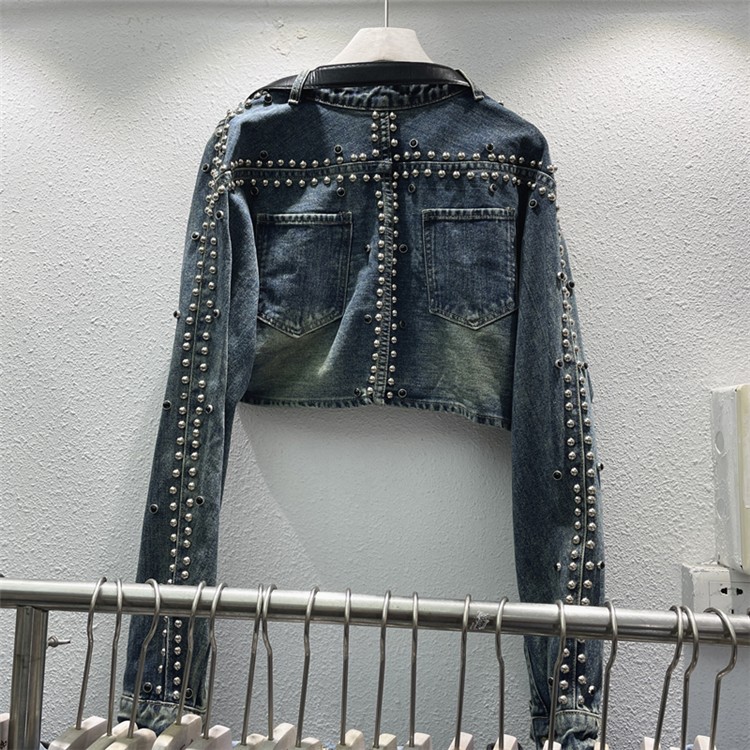 Autumn New Heavy Industry Metal Rivet Denim Short Coat